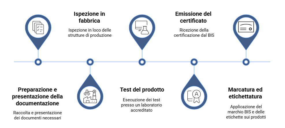 Grazie alla collaborazione tra il nostro team italiano e quello indiano siamo in grado di accompagnarti durante tutto il percorso per l’ottenimento della certificazione: dall’analisi dei requisiti alla gestione delle pratiche, fino alla marcatura finale del tuo prodotto.